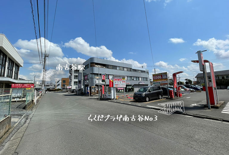 ACCESS・PARKINGアクセス・駐車場提携駐車場はこちら–Access MapアクセスマップJR川越線南古谷駅から徒歩1分、駅ロータリーから目の前の道を真っすぐ進んで頂くと、右手にございます。のロゴが目印です。 アクセスマップへ戻る–Parking Lot提携駐車場当社提携駐車場はTERIOS TIME28南古谷及びらくだプラザ南古谷となります。TERIOS TIME28南古谷「TERIOS TIME28南古谷」はベルクの向かい側にございます。お帰りの際に無料のサービスメダルをお渡しします。らくだプラザ南古谷「らくだプラザ南古谷」は埼玉縣信用金庫南古谷支店の向かい側にございます。お帰りの際に無料のサービス券をお渡しします。ゲート内(青色部分)が提携駐車場となります。ゲート外(赤色部分)は提携駐車場ではございませんのでご注意ください。ご相談・ご不明な点がございましたらお気軽にご連絡ください ご来店予約はこちら 物件探しを依頼する 無料査定依頼 お問い合わせ