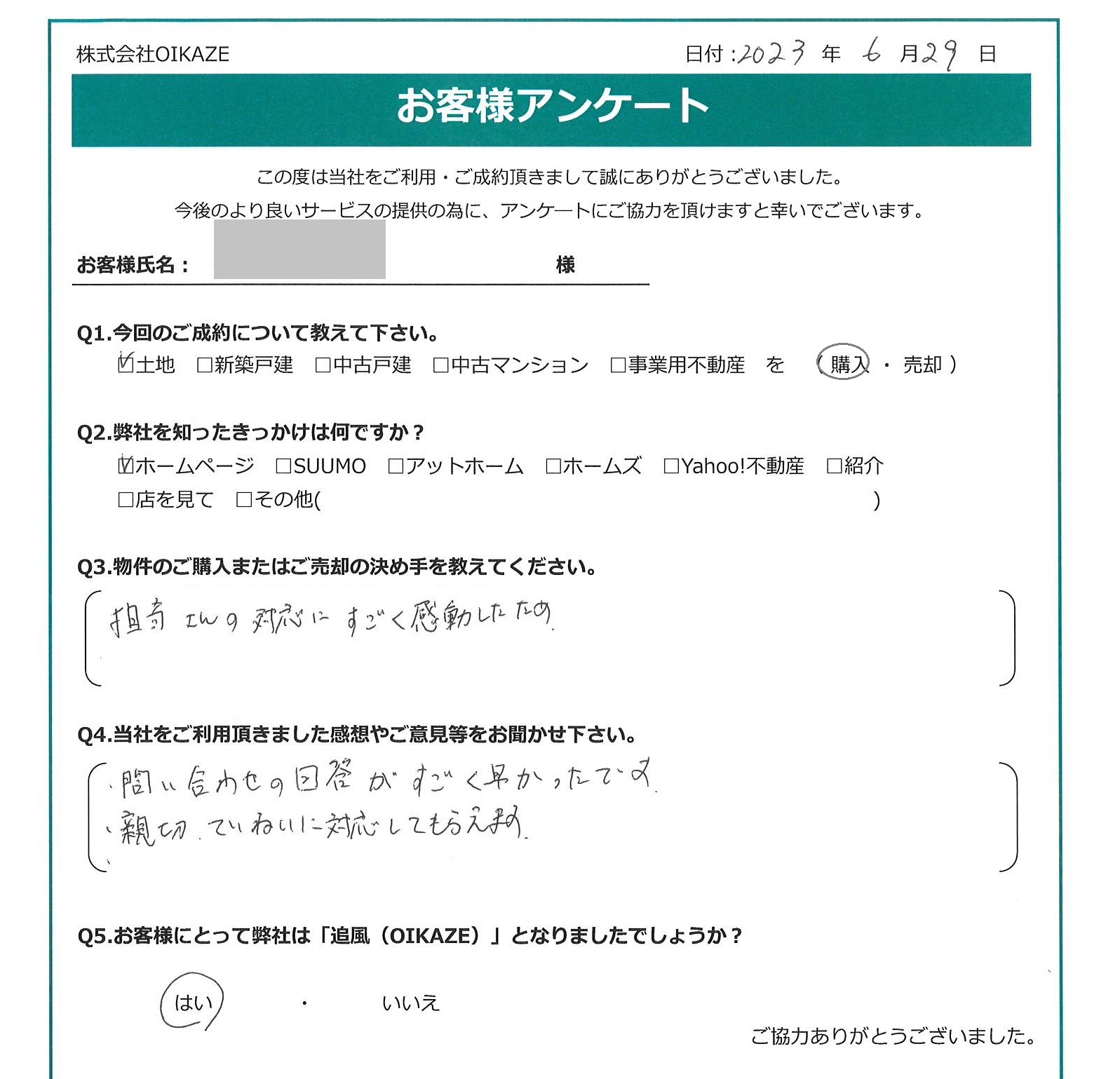 お客様にとって弊社は「追風(OIKAZE)」となりましたでしょうか?
