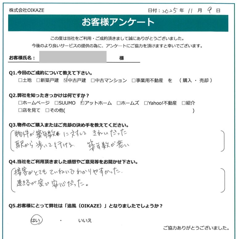 接客がとてもていねいでわかりやすかった。 連絡が密で安心だった。