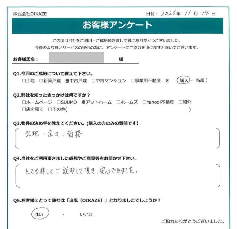 【2025年11月ご成約】埼玉県川越市の中古戸建をご購入のT様