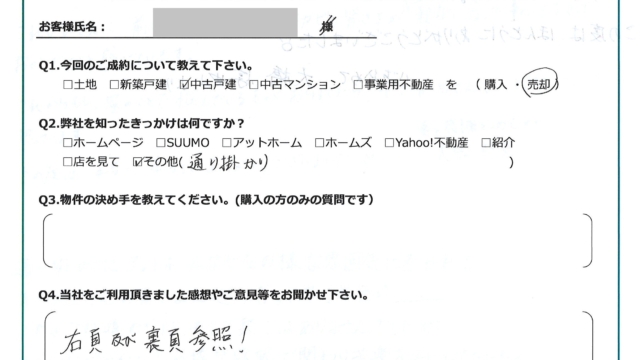 今回のご成約について教えて下さい。