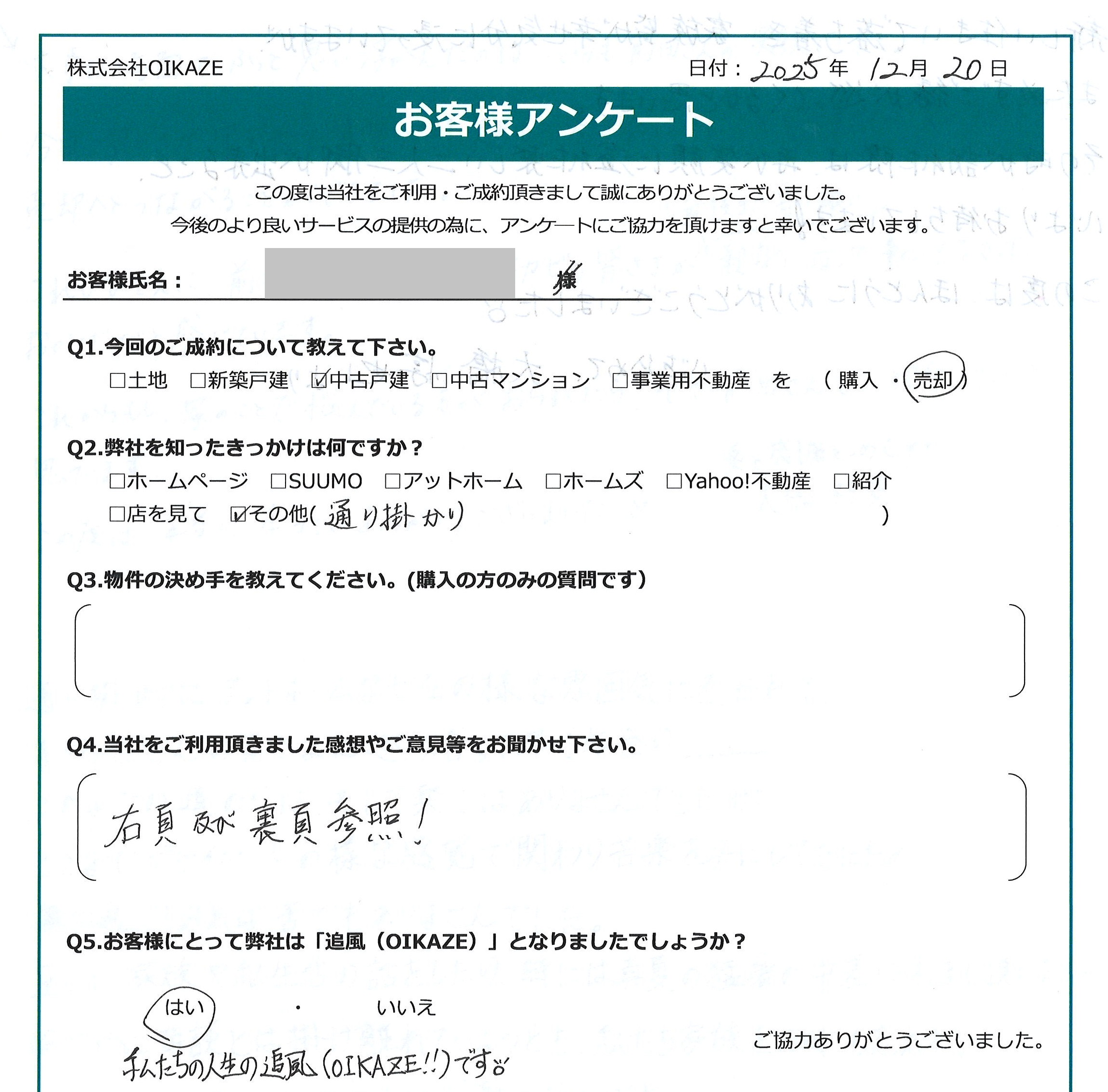 お客様にとって弊社は「追風(OIKAZE)」となりましたでしょうか?