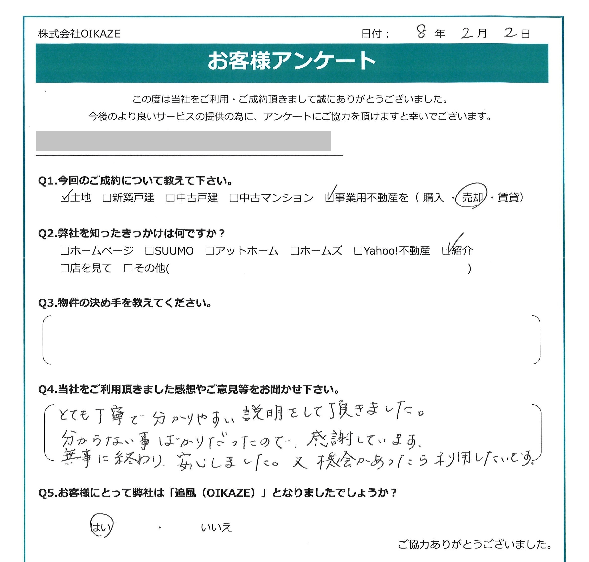 とても丁寧で分かりやすい説明をして頂きました。 分からない事ばかりだったので、感謝しています。 無事に終わり、安心しました。又機会があったら利用したいです。