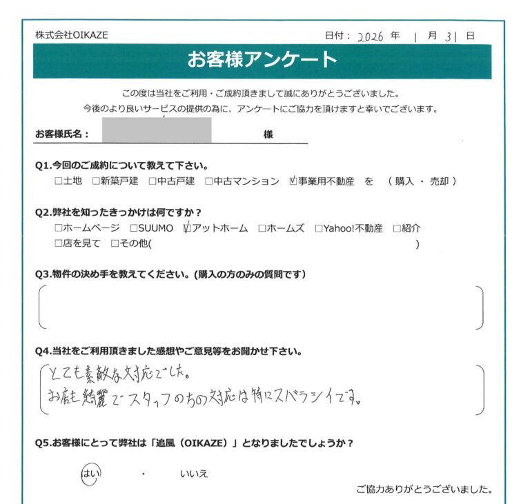 【2026年1月ご成約】埼玉県川越市の事業用不動産の賃貸契約をされたM様