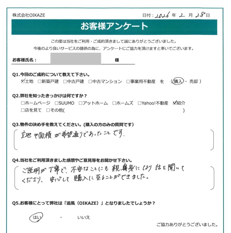 【2026年2月ご成約】埼玉県川越市の土地をご購入のS様