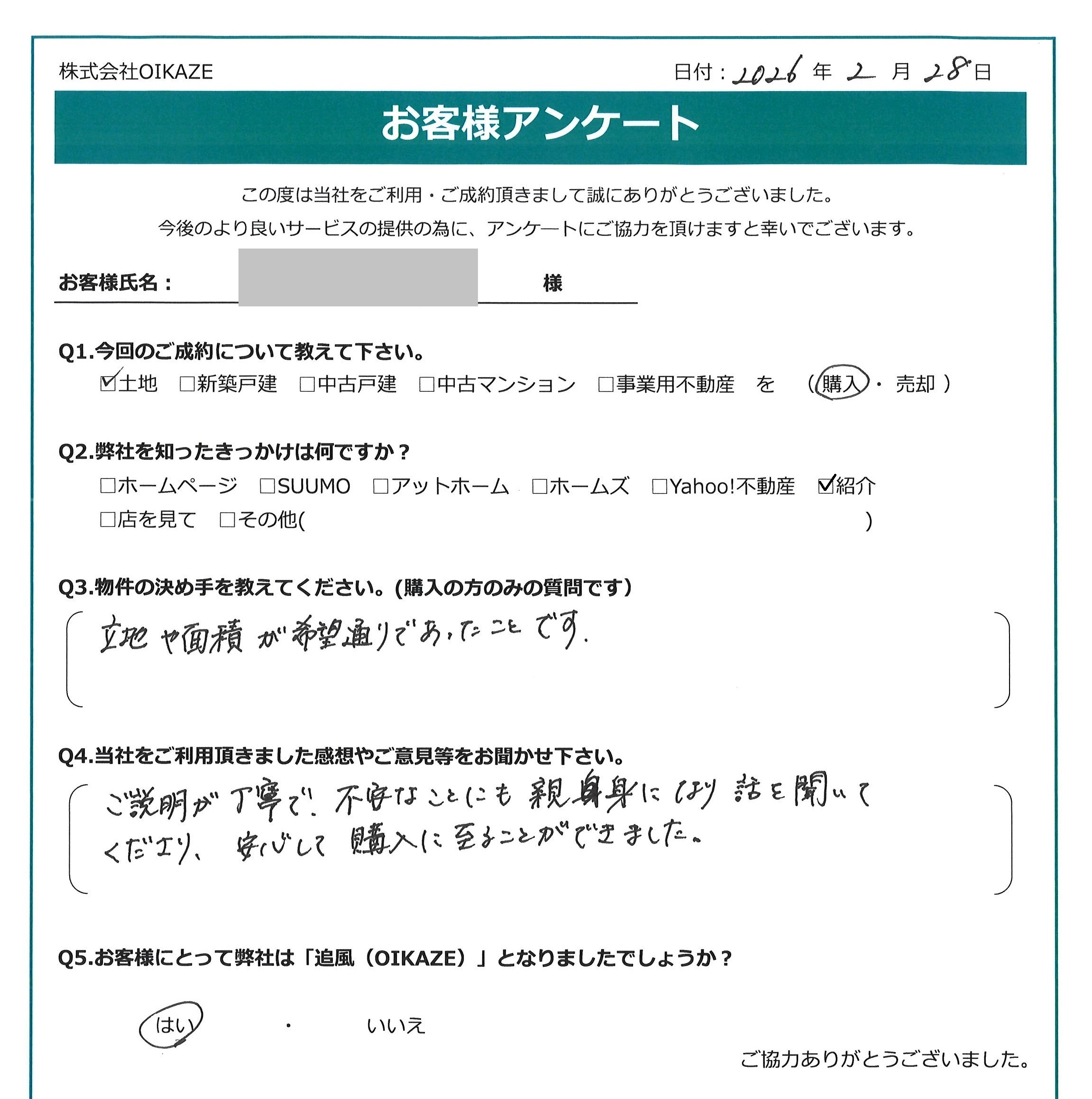 お客様にとって弊社は「追風(OIKAZE)」となりましたでしょうか?