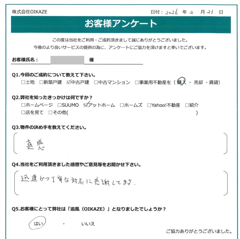 【2026年2月ご成約】埼玉県川越市の中古戸建をご購入のK様