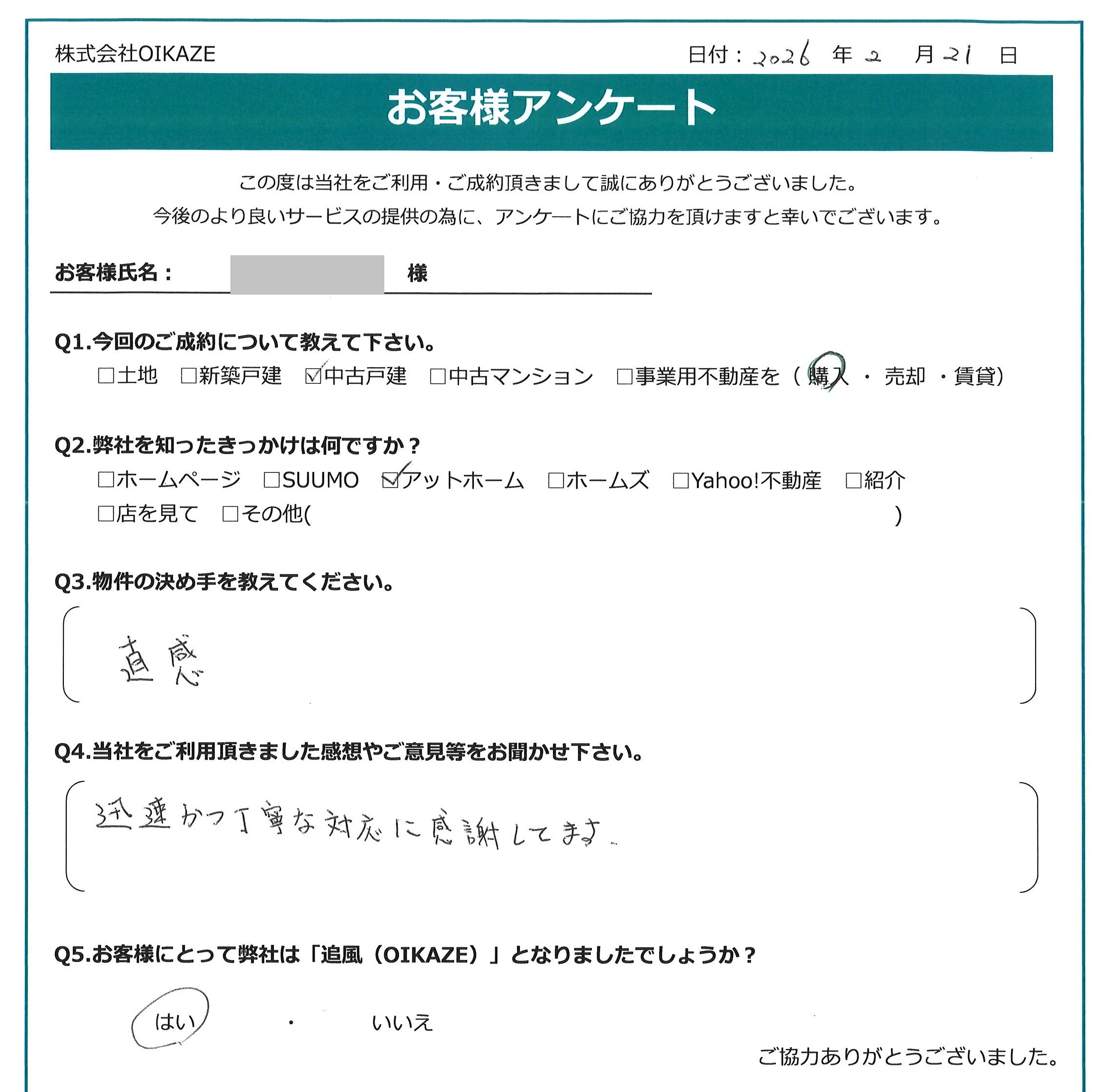 お客様にとって弊社は「追風(OIKAZE)」となりましたでしょうか?