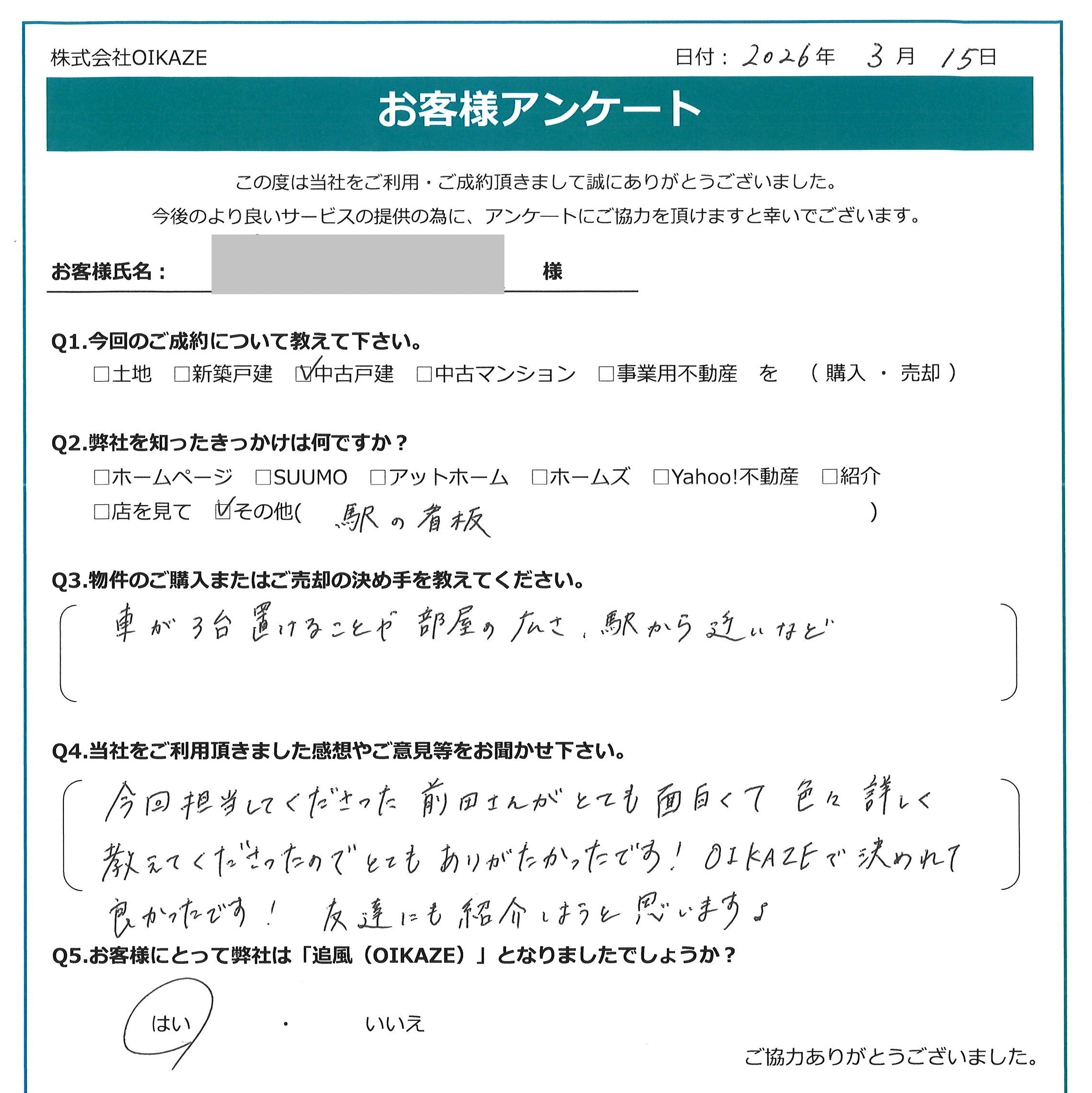 【2026年3月ご成約】埼玉県川越市の中古戸建をご購入のS様