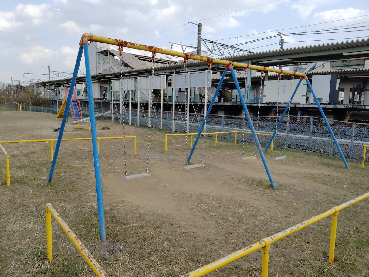 駅のホームが見えるので、電車の好きなお子さまも楽しめる事が出来る公園です。ブランコは4種類、鉄棒の高さは3種ありますので色々とチャレンジができます。