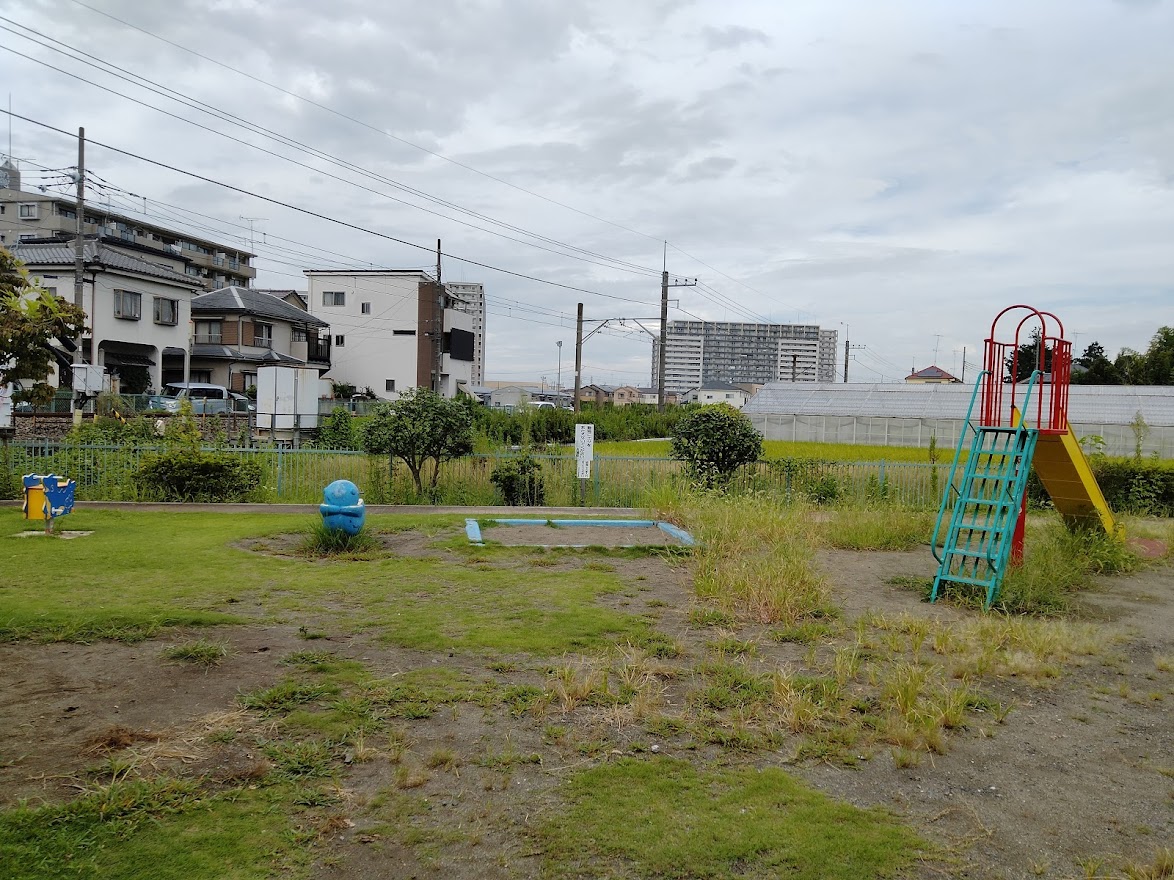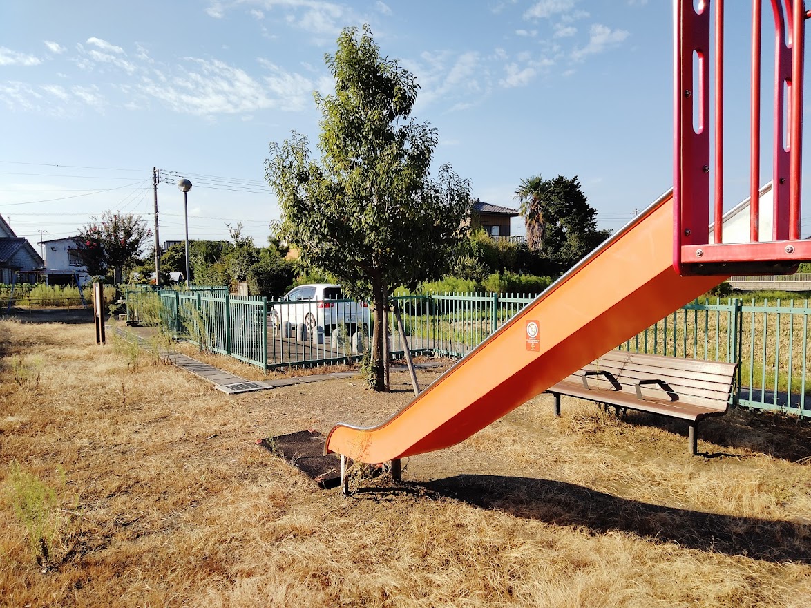 住宅地にある小さな公園。遊具は滑り台とブランコがありますのでお子様も日常的に遊べます。百日紅(さるすべり)などのお花が楽しめます。