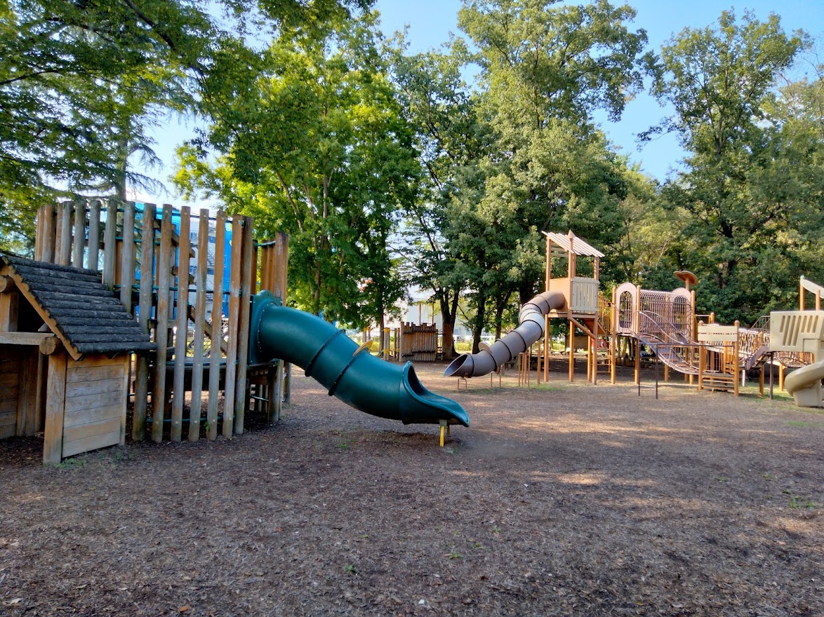 お子様も楽しめる雲梯と滑り台が一緒になったコンビネーション遊具があります。木が多いので日陰が多く、真夏の日差しの強い日も安心して遊べます。