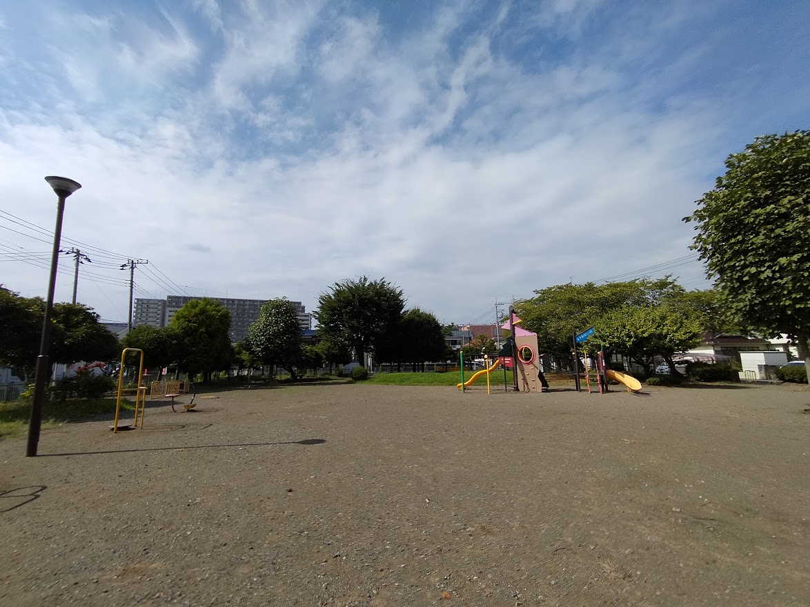 住宅街の中にある公園で大きな広場の周りにブランコや砂場やスプリング遊具があり、休日には親子連れでにぎわいます。公園の周囲には様々な木々が植えられており、百日紅(さるすべり)などのお花も楽しめます。