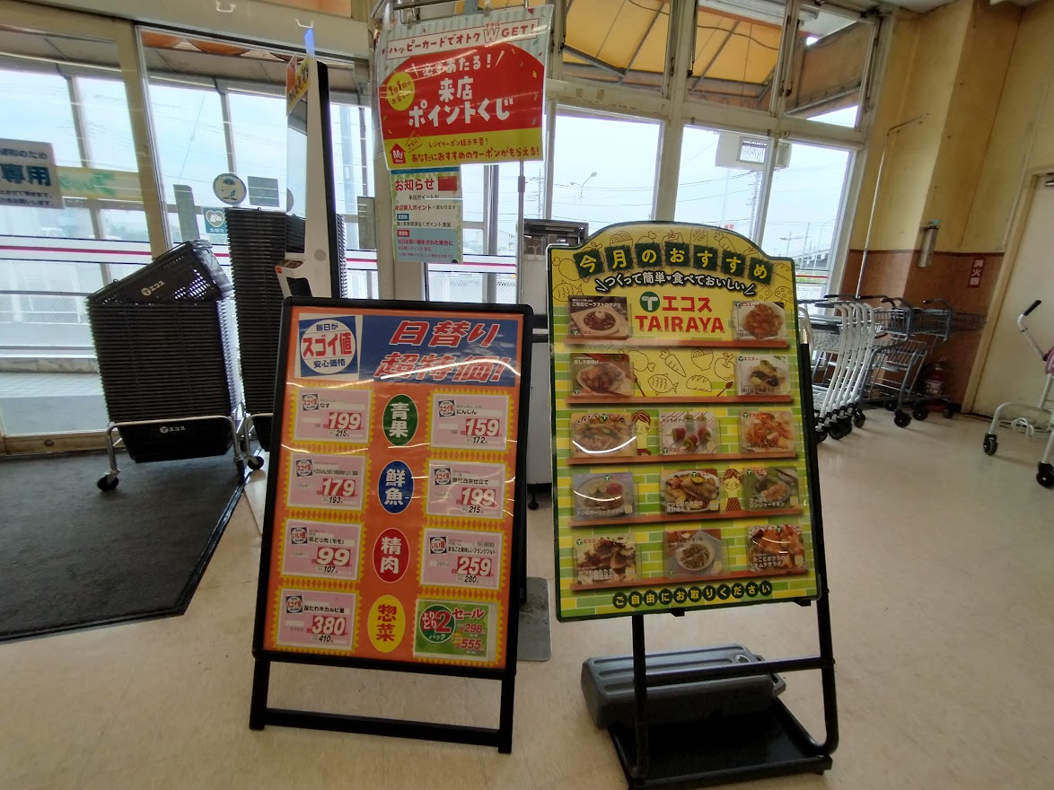 またエコス木野目店は店舗の建物自体は少し古いようですが、店内の陳列が美しく、清掃も行き届いた印象でした。これからも変わらず、地域の方たちに愛される常連様に優しい店舗でいて欲しいなと思います。