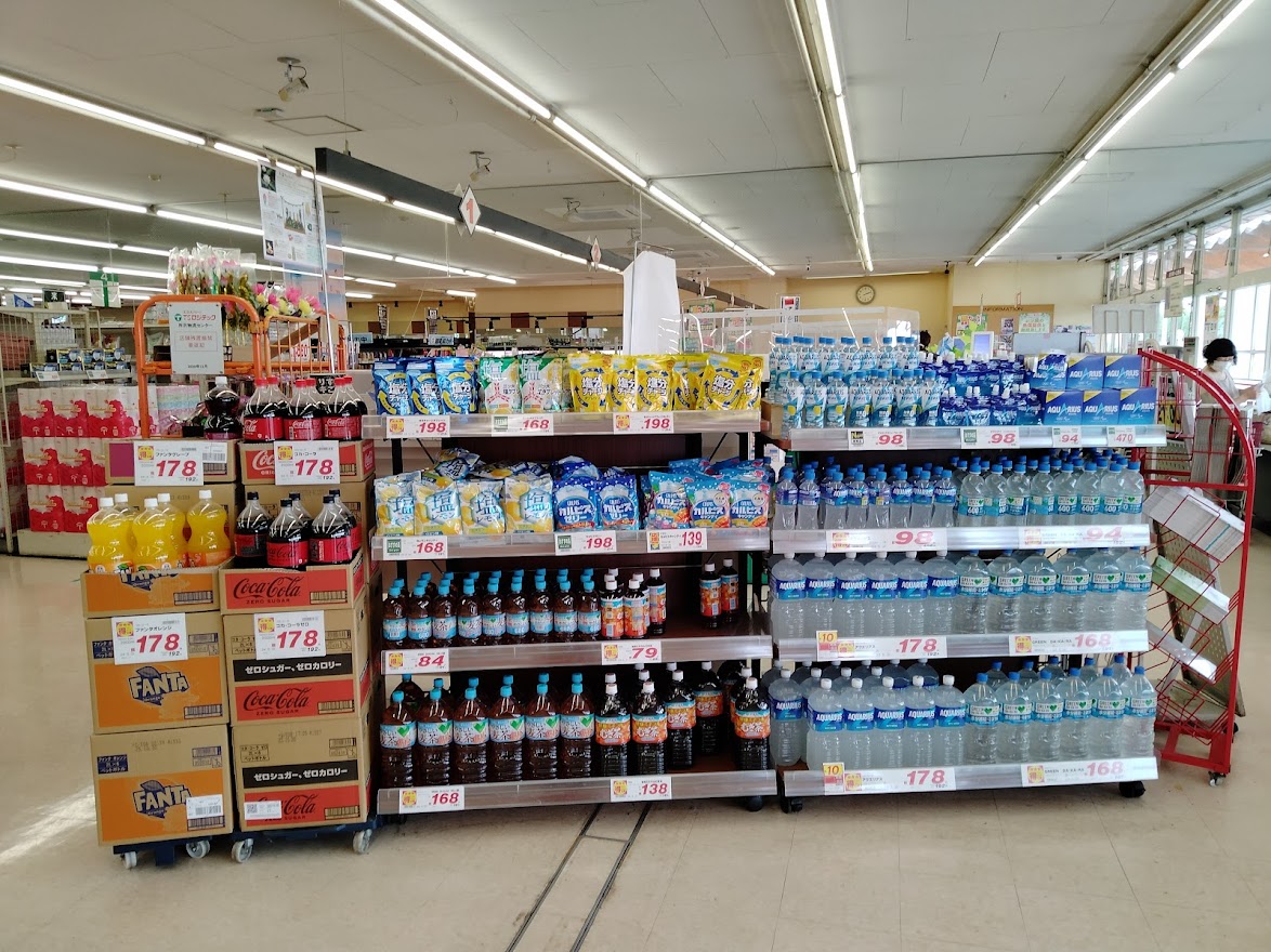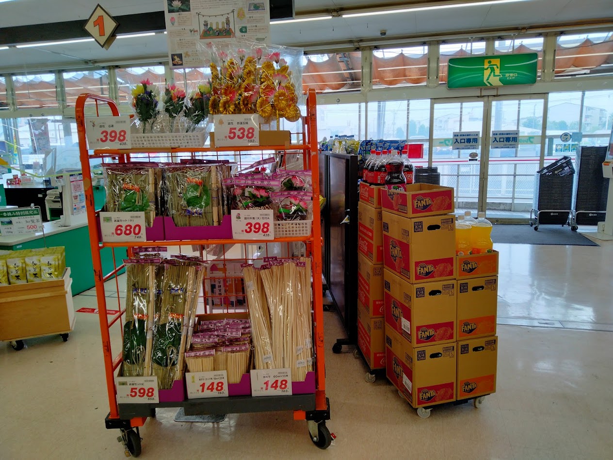 取材・撮影を行ったのは夏前の時期なので、水分補給のドリンクやお盆のお供え用の飾り、花火などが並んでいます。