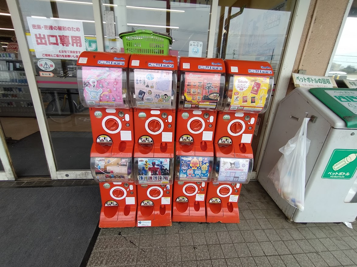 小さなお子様が喜ぶガチャガチャが店外に設置されています。