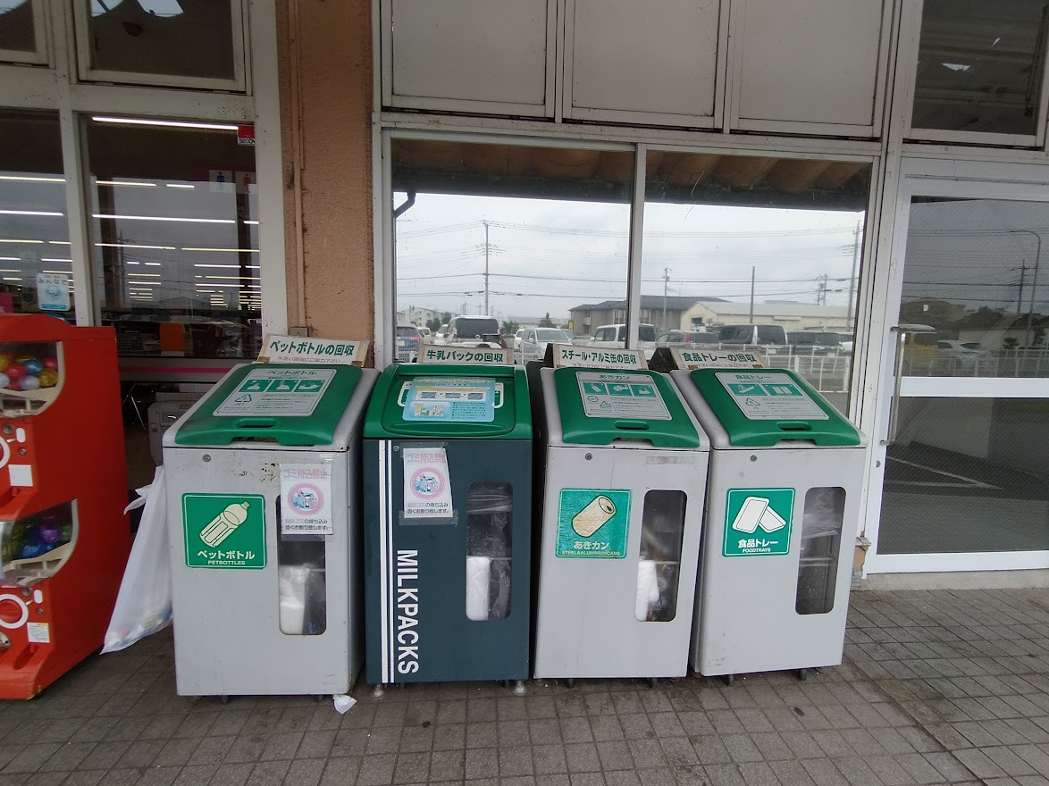 ペットボトル、牛乳パック、スチール・アルミ、食品トレーなどの回収BOXがあります。