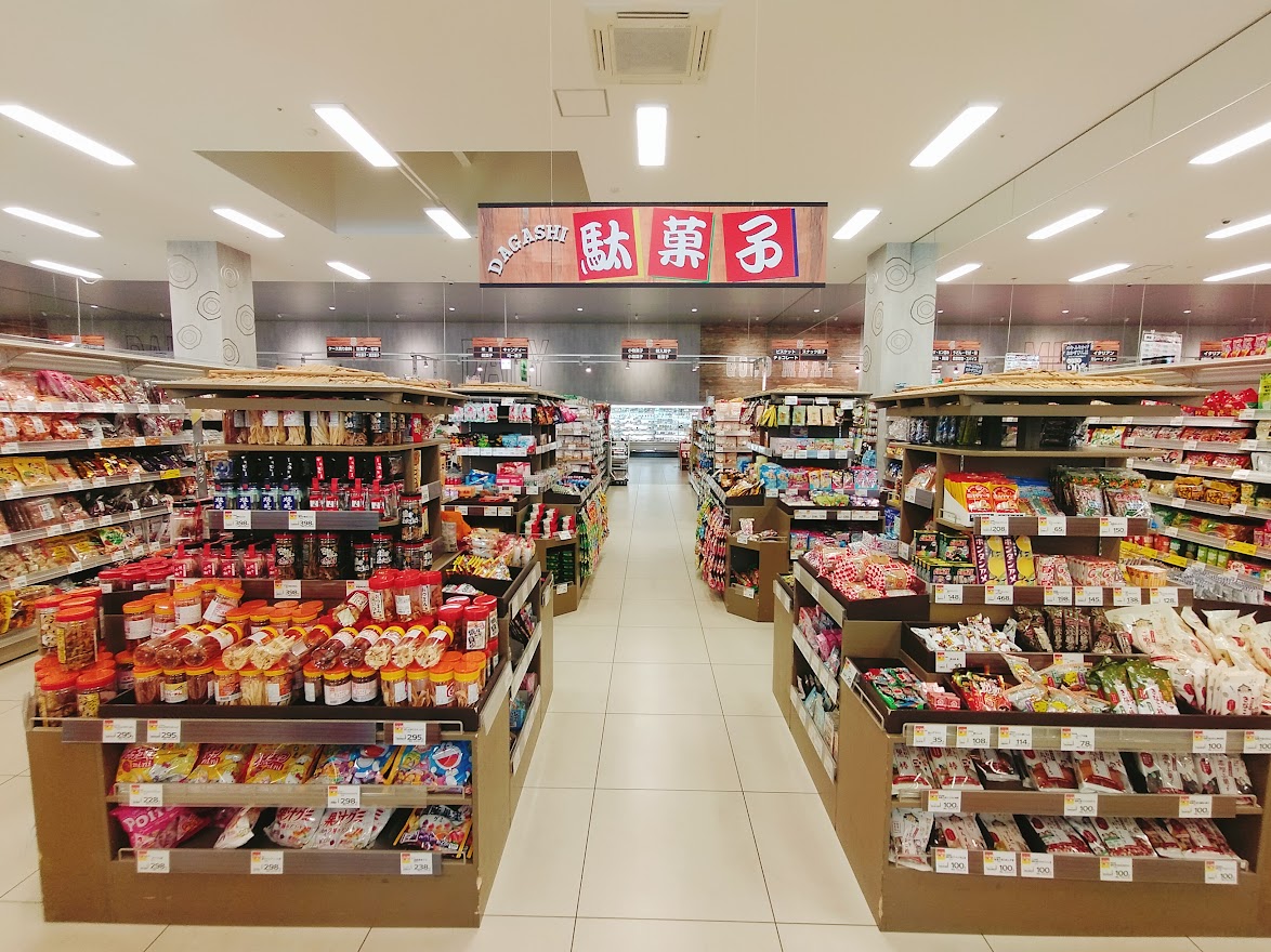 お菓子売り場には駄菓子のコーナーがあり、沢山の種類の駄菓子が陳列されていました。