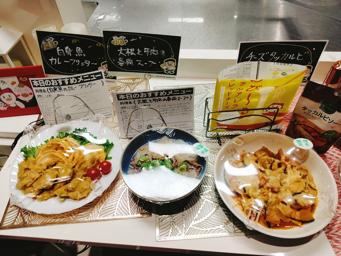 売場で提供している旬の食材やおすすめの素材を使って、毎日の食卓メニューを提案しているコーナーです。