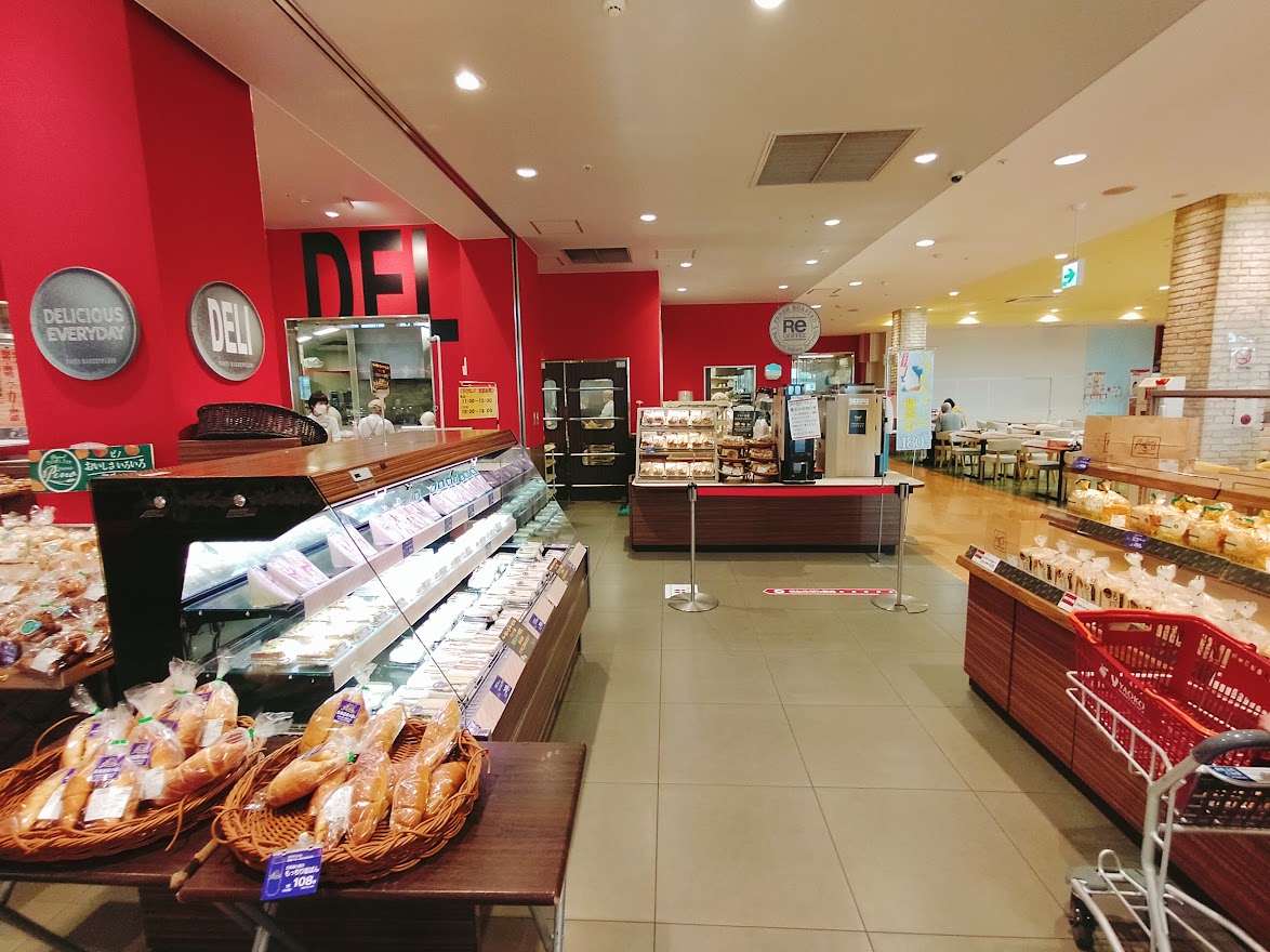 また、店内には隣接したフードコートやヤオコーで買ったお惣菜をそのままイートインコーナもあり食事も楽しめます。
