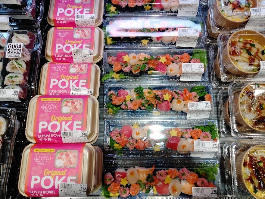 ただのお寿司だけでなく、ニーズに合わせた沢山の種類のものが並んでいました。ハワイの「ぽき丼」など、しょうゆがいらず、たれ付きなので絡めてそのまま食べられる商品も人気。