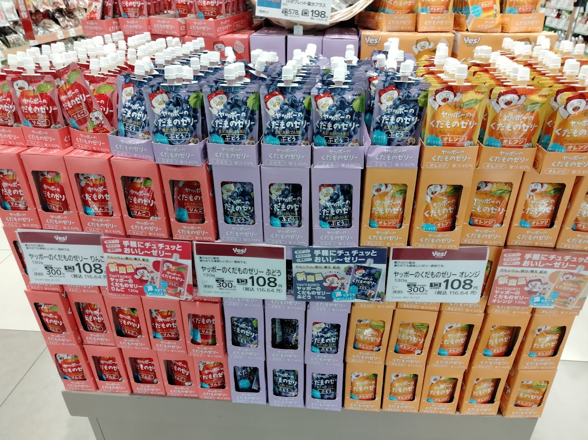 人気商品の「ヤッポーのくだものゼリー」はヤオコーキャラクターヤッポーのリーズナブルで人気の商品。