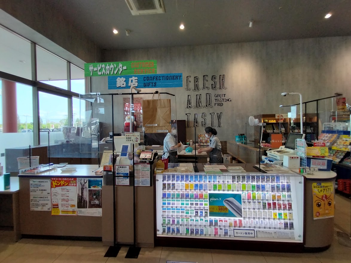 サービスカウンターではギフトや銘店の商品販売やヤオコーカードの入会申し込み、たばこの販売など各種サービスを行っております。