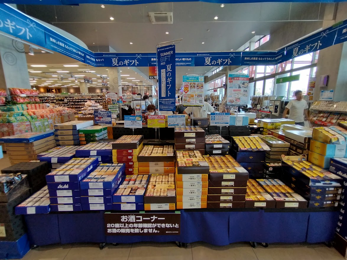 サービスカウンター前には、御中元やお歳暮など季節に合わせたギフトなどが並んでいます。ご注文はサービスカウンターで承っています。