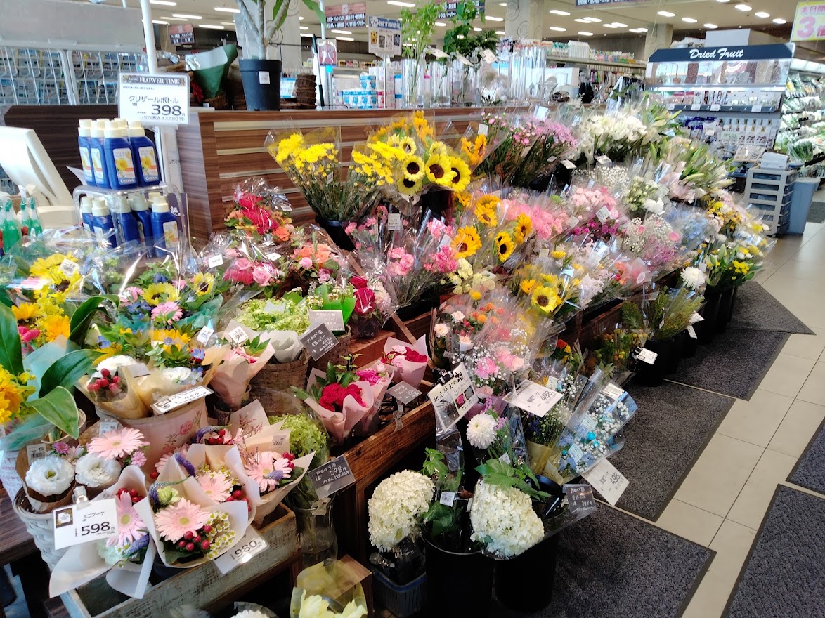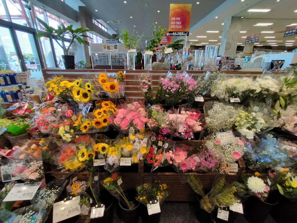 特に川越南古谷店は種類が豊富でとてもよく生花が売れているそうです。季節のお花も沢山取り揃えていました。