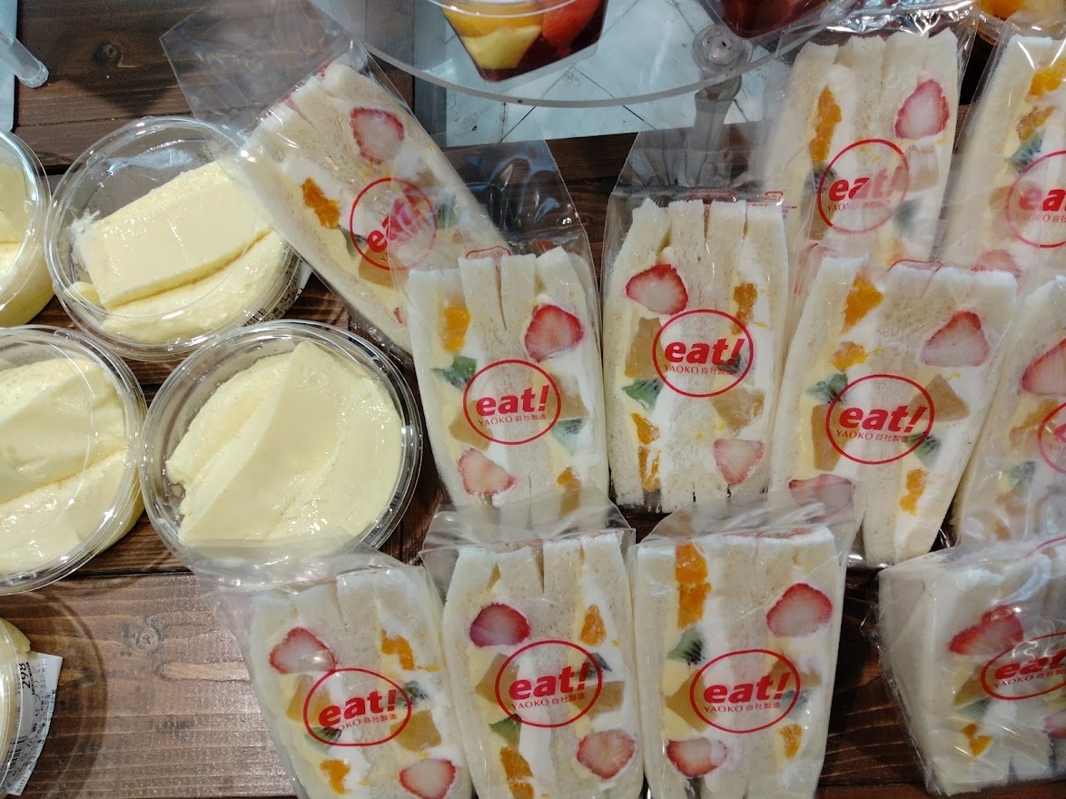 売れ筋商品に「なめらか寄せプリン」と「フルーツサンド」があります。自社工場製造のヤオコーオリジナル商品です。